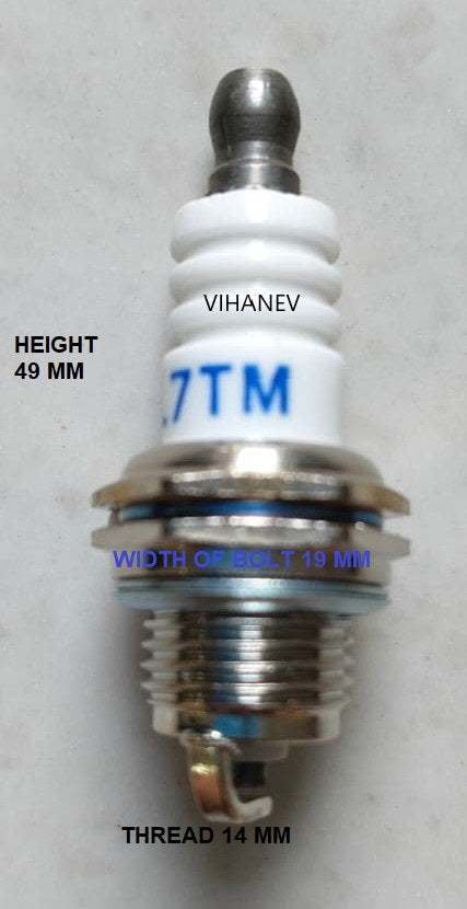 49cc Petrol Dirt/Pocket Bike Spark Plug Compatible to L7TM / L7T / BM6A / M7 / CJ8 Suitable for Trimmer, Blower, Chainsaw, Brushcutter, Gas Scooters, Pocket Bikes, ATV etc - LWH 1.9*1.9*4.9 Cms