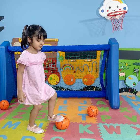 - INETRACTIVE : The goal post allows kids to kick, shoot, and score. Games like football, hockey, and soccer boost children's abilities to work together. They also develop their teamwork, motor skills coordination, and social skills. This can be setup indoors and outdoors so that you can play with your child